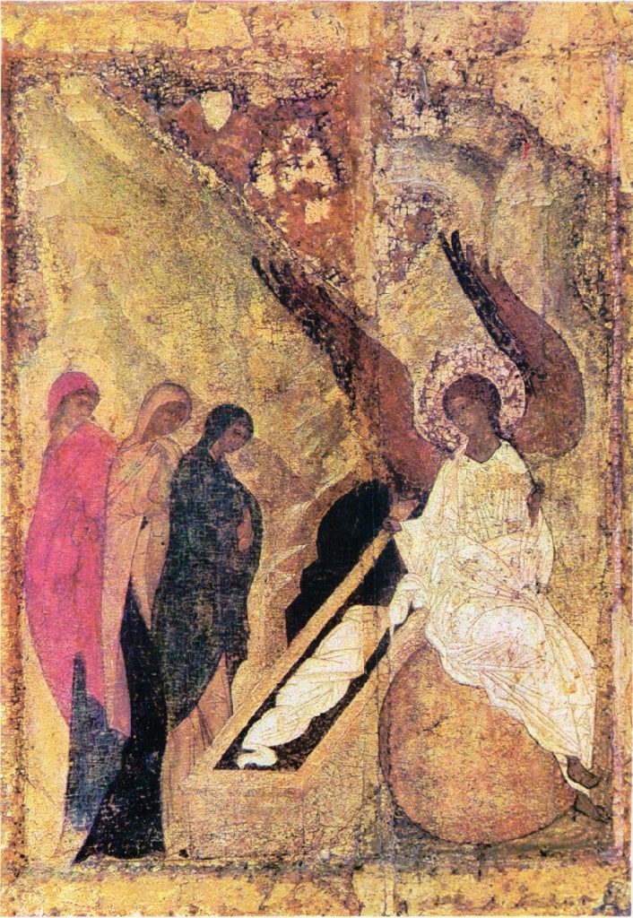 Ikona Zjevení anděla ženám myronosicím (1502–1503) ze školy Andreje Rubleva není obrazem, který stačí jen pozorovat. Patří k těm ikonám, které odkrývají mnohem více, než můžeme vidět na první pohled. Je to ikona, do které je třeba vstoupit. Na první pohled na ní Kristus chybí, ale přesto ukazuje na Něho. Právě tato zdánlivá nepřítomnost nás nutí hledat hlouběji a ptát se: kde v tom mám vidět Krista? kde Ho vlastně hledám, hledám Ho na správném místě?